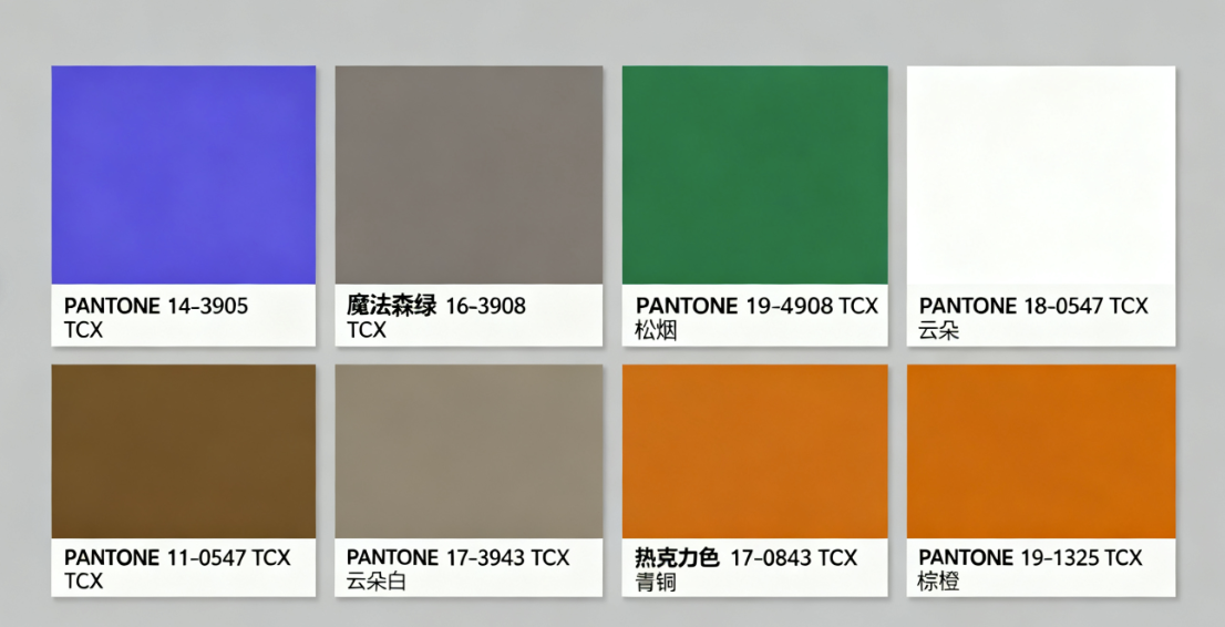 - 青铜雾(PANTONE 17-0843 TCX):带微妙光泽的暖棕色,适配皮质滚边的家居服设计,提升质感又不挑人。